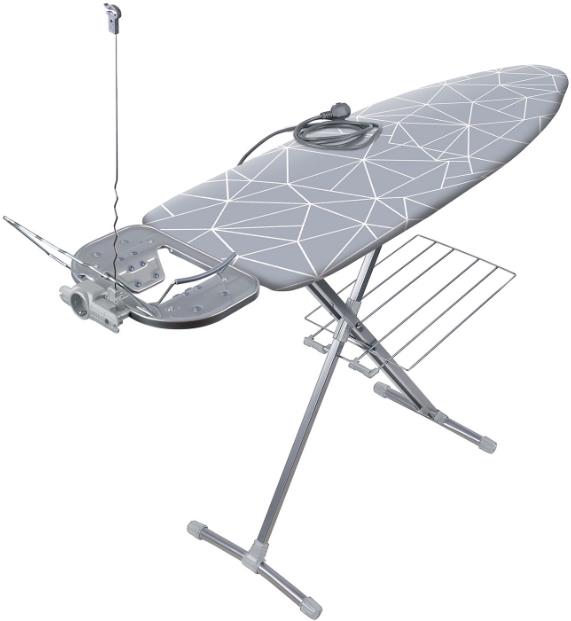 Гладильная доска с электросоединителем и подставкой под утюг, регулируемая по высоте. Удобная полка для белья и переносной подрукавник.