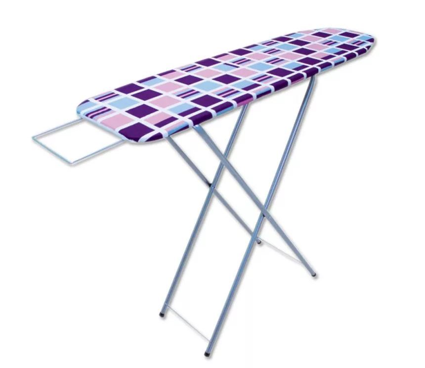 Рабочий стол из ДСП, ножки из стальной оцинкованной трубы. Размер стола 115х35см. Материал чехла 100% хлопок. Выдвижная подставка под утюг. Рабочая высота стола 70-89см.