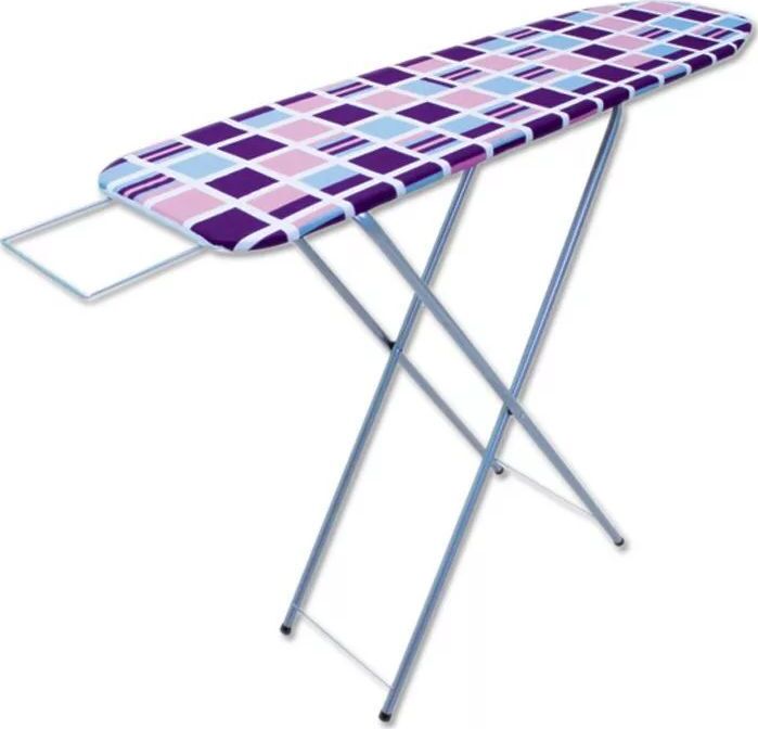 Рабочий стол из ДСП, ножки из стальной оцинкованной трубы. Размер стола 115х35см. Материал чехла 100% хлопок. Выдвижная подставка под утюг. Рабочая высота стола 70-89см.