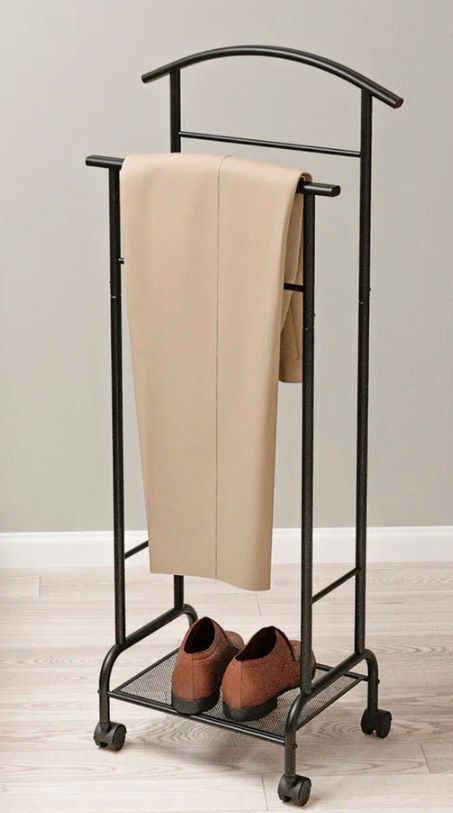 Назначение Для размещения одежды. Материал Сталь, полимерное покрытие, пластик. Габариты (Д*Ш*В) 47х30х114 см. Максимальная нагрузка, кг до 3 кг на плечико.