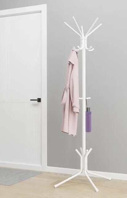 Прочная металлическая напольная вешалка для одежды, сумок и аксессуаров.Устойчивое основание. Качественное и надежное изделие - прослужит долго. Высота вешалки 182 см, можно разместить длинную одежду.