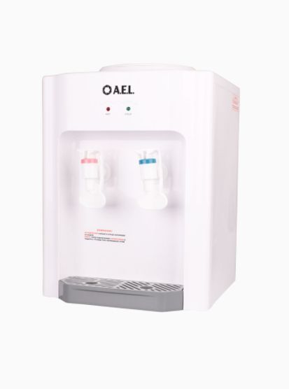 AEL TD-AEL-107 Настольный кулер для воды с электронным охлаждением и верхней загрузкой бутыли. Имеет компактные размеры, благодаря чему легко устанавливается на стол или тумбочку не загромождая пространство. Оснащен двумя механическими кранами типа "нажим чашкой" для подачи горячей и охлажденной воды. Для включения/отключения нагрева или охлаждения на задней стенке корпуса расположены специальные тумблеры. Корпус изготовлен из высококачественного пищевого пластика. Кулер подходит как для домашнего, так и для офисного использования, на предприятиях и учреждениях.