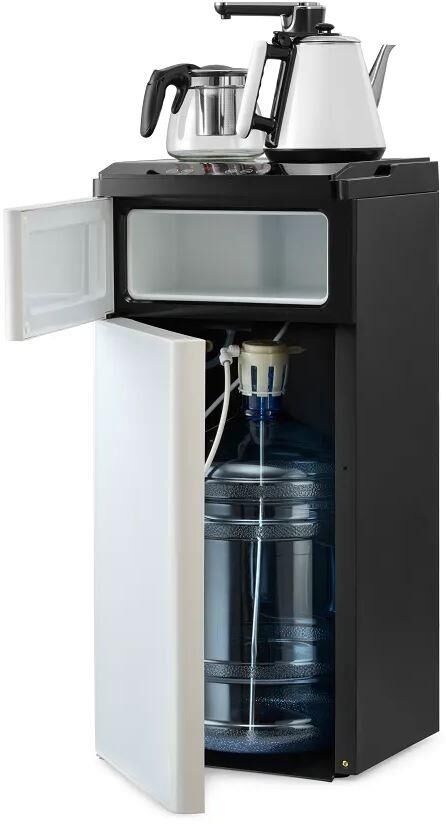 Напольный кулер с чайным столиком (Tea Bar) и электронным охлаждением (белый). Оснащен двумя чайниками (0.5 л для заварки, 0.7 л для кипячения). Подача воды сенсорная. Мощность нагрева 1350 Вт (10 л/ч), охлаждения 75 Вт (0.6 л/ч). Шкафчик для посуды.