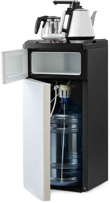Напольный кулер с чайным столиком (Tea Bar), без охлаждения (белый). Оснащен двумя чайниками (0.5 л для заварки, 0.7 л для кипячения). Подача воды сенсорная. Мощность нагрева 1350 Вт (10 л/ч). Шкафчик для посуды.